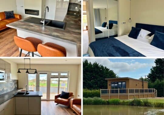 At Fields End Water Caravan Park, Lodges & Fishery in Cambridgeshire, the Waterside area has 4 luxury glamping pods by the lake. All the pods have underfloor heating and 3 are dog friendly. These pods have kitchenettes and ensuites (toilets and basins), but for showers you need to use the facilities which are very close by. There’s no extra charge for fishing right in front of your pod and fire pits are allowed – find out more. There are also 6 luxury dog friendly, fully equipped lodges with hot tubs. Three of them also have a private garden – find out more.