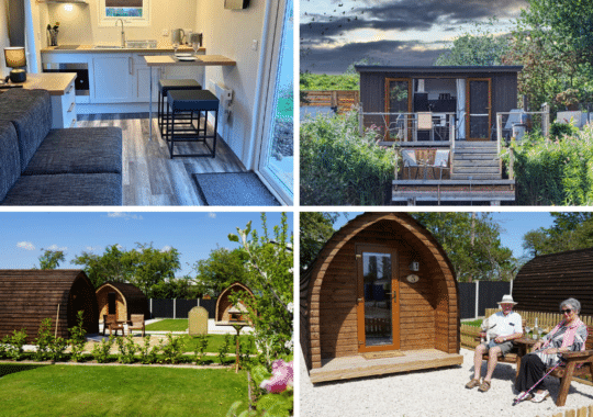 - Glamping pods with mini kitchens, both with and without ensuite toilets