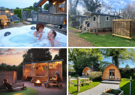 - Luxury glamping – mainly pods, shepherd huts or lodges with kitchenettes and/or ensuite bathroom