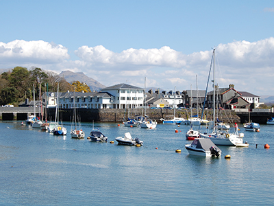 At Porthmadog you can hop on the nostalgic Welsh Highland Railway steam train, heading to the dramatic mountains of Snowdonia, stopping off at Beddgelert en route.