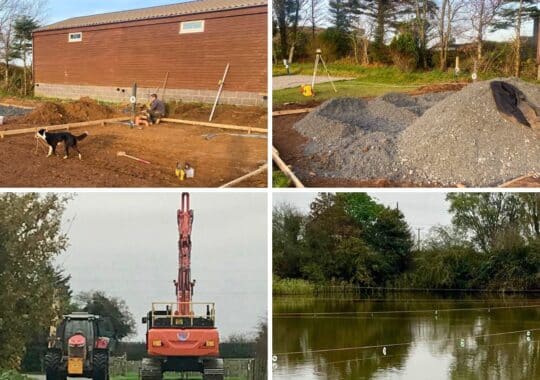 Grooby’s Pit has a huge to-do list this winter. It includes relocating the bin/recycling area, building a new parking area, changing Kingfisher Lookout lakeside lodge to a Shepherd Hut (still with a private hot tub), removing Squirrel Hideaway and creating a new motorhome/campervan pitch, as well as relocating the seasonals’ shower block. The big machinery shown here will be moving the units around.