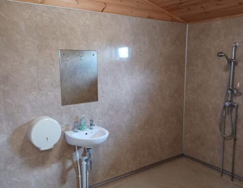 The heated facilities building is spotlessly clean with wet room style showers and hair dryers built in for your convenience.