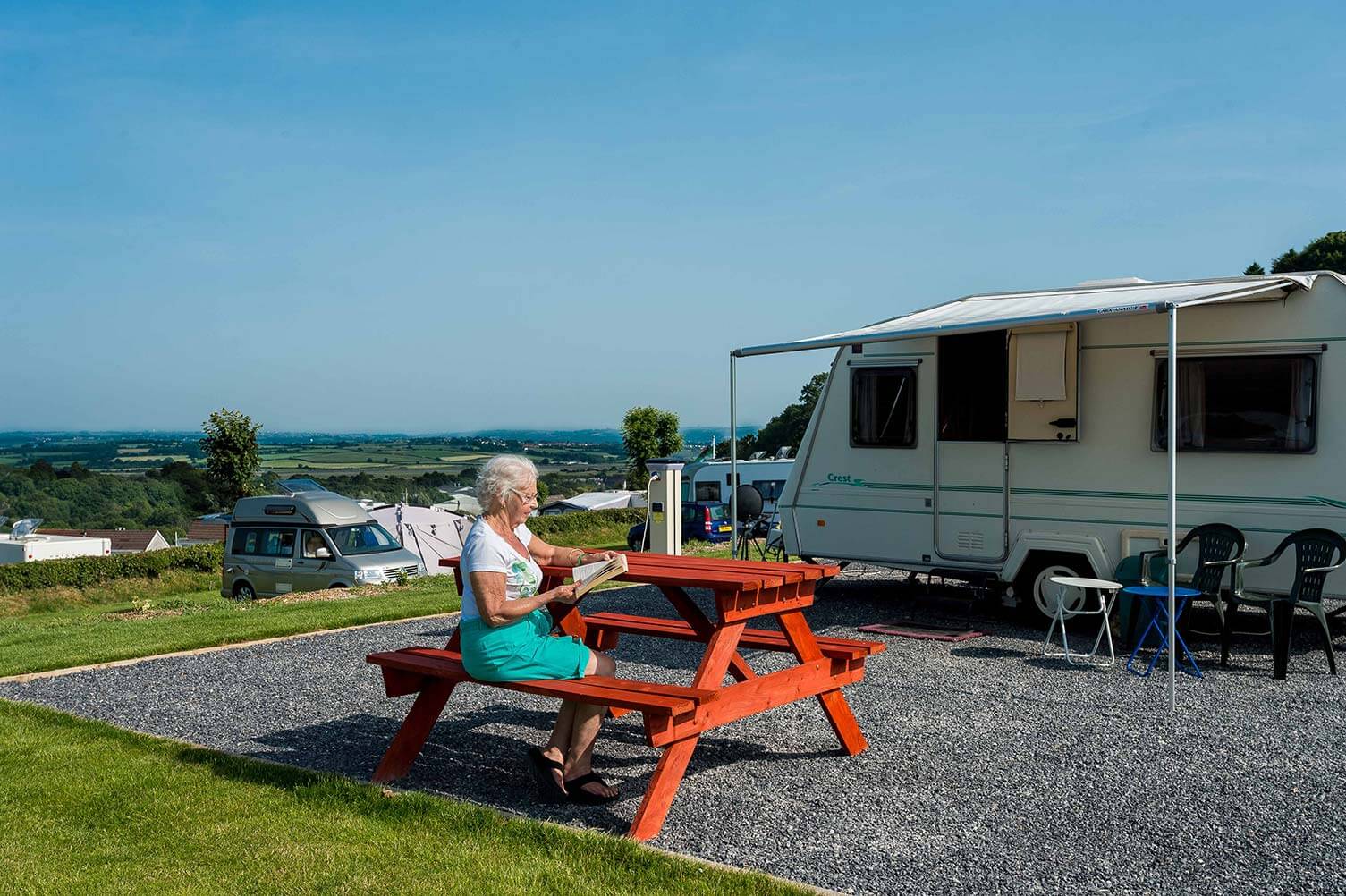 Our hardstanding touring pitches are carefully landscaped on three tiers across the hillside. This means every guest can enjoy countryside views.