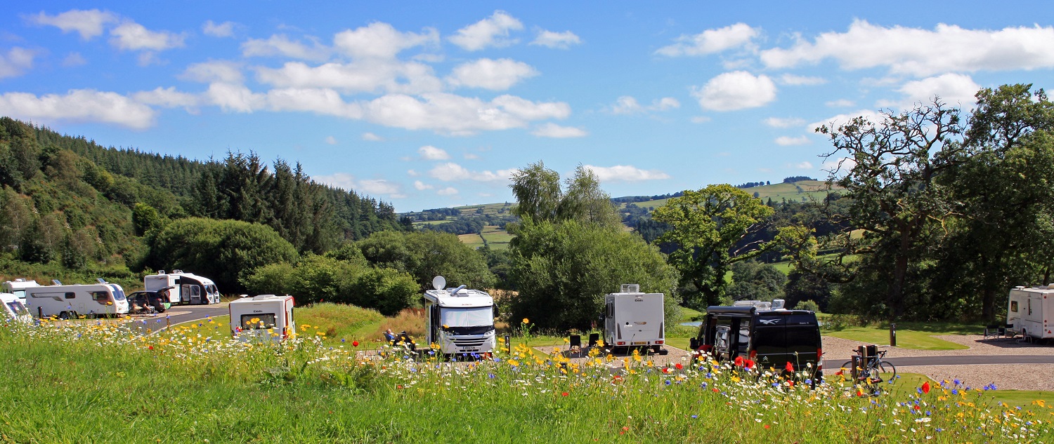Situated on a gently sloping, south facing side of the Clywedog Valley easily accessible directly off the B4518 with large tarmac entrance. We offer peace and tranquility with superb views across the Welsh Valley and a warm, friendly welcome and are always on hand to help. Within the grounds of the park there are large dog walking areas, with a separate fenced off dog training area.