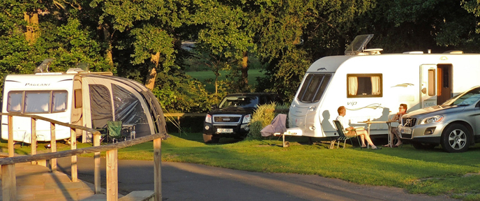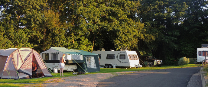 Camping pitches are grass, while touring pitches have hard standing wheel-runs.