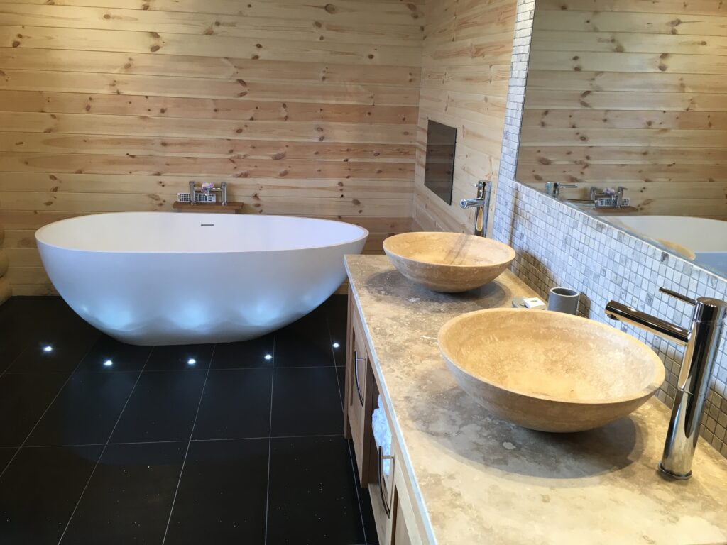 A stunning new facilities building for the touring site features good sized private shower rooms and laundry facilities. The bathrooms have rainfall showers and oak washstands with raised stone basins, all finished to a very high standard.
